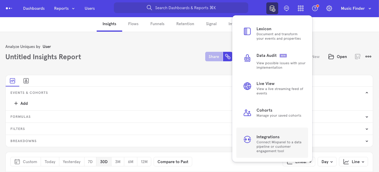 Export Mixpanel cohorts to Insider to create custom segments that you can apply in your Insider campaigns. Manage the Insider integration from the Mixpanel integrations page.