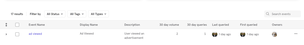 OwnersAllows your team to assign a point-of-contact to events in case team members have follow-up questions about an event. (Only available on the Enterprise Plan)